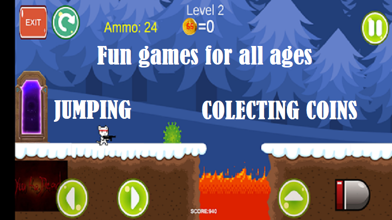 Your play as commando cat in dangerous world, your mission is to save the world from evil that ruled world for many years. To complete level Cat must collect number of coins ,when collecting certain number of coins the portal to next level will be open. New adventure games offline free without wifi ,shooting,jumping,for good gaming experience. Cat kitty adventure campaign contains 13 levels with boss fights. Download play and enjoy and dont forget to rate and comment if you like mario and luigy like game, support our 2d classic game for more future levels.