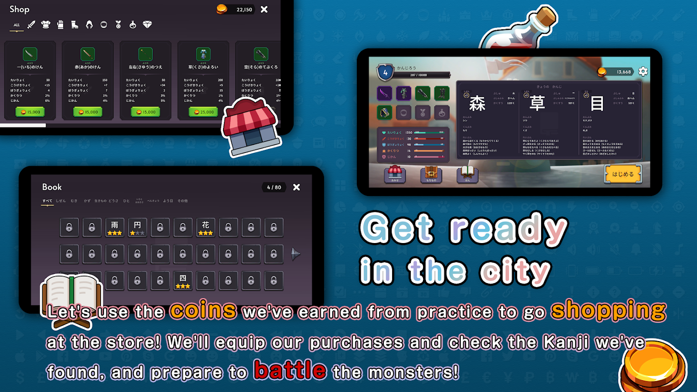 इस काम के मुख्य पात्र कांजीरो के रूप में, आप कांजी लिखकर, कांजी की तलाश और पढ़ने की तलाश में राक्षसों द्वारा चुराए गए कांजी की खोज करेंगे। कांजी की खोज करके, आप अपना स्तर बढ़ा सकते हैं और सिक्के कमा सकते हैं।
