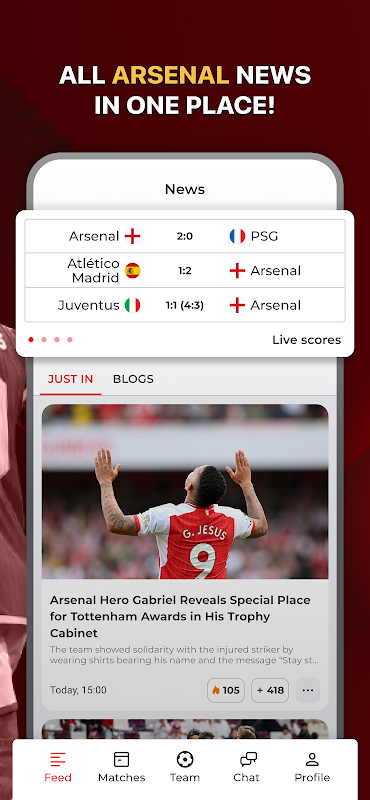 • लाइव मैच अपडेट: हर गेम के दौरान आपको अपडेट रखने के लिए वास्तविक समय के स्कोर, कमेंट्री और आँकड़े। सर्वश्रेष्ठ और त्वरित मैच अपडेट, लाइव स्कोर और परिणाम सीधे एमिरेट्स स्टेडियम से।