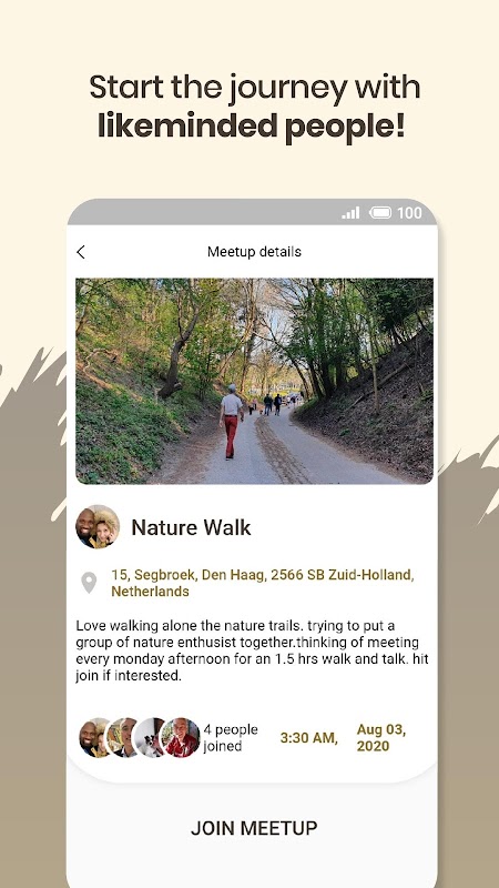 Form new bonds by spontaneously creating meetups with people who are just like you or maybe a little bit different!