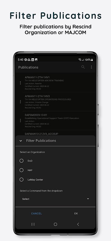 एंड्रॉइड के लिए एएफआई एक्सप्लोरर के साथ वायु सेना और अंतरिक्ष बल प्रकाशनों का त्वरित संदर्भ लें। आप जिस विशिष्ट एएफआई की तलाश कर रहे हैं उसे ढूंढने के लिए उन्नत खोज फ़ंक्शन का उपयोग करें।