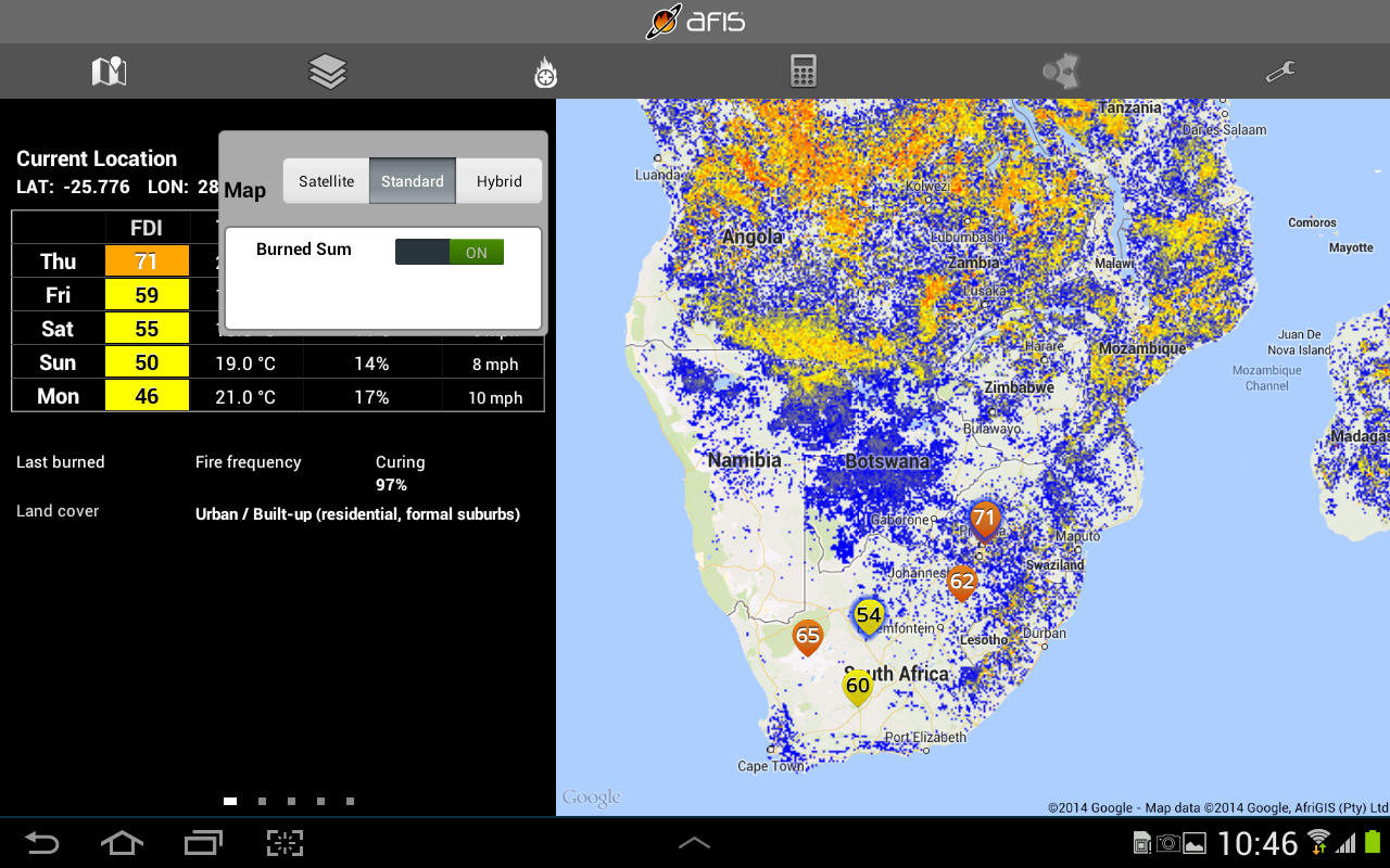 The Advanced Fire Monitoring System (AFIS) is a satellite-based fire information tool (afis.co.za) that provides near real-time fire information to users across the globe. The AFIS app integrates the various AFIS services in a fully-featured, easy-to-use mobile application.