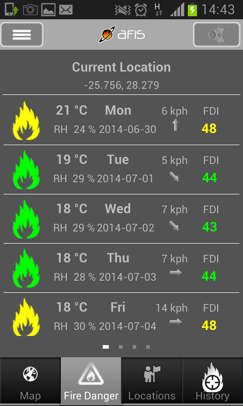 Get the latest wild fire location and fire danger forecasts with the app that puts vital fire information at your fingertips. AFIS gives you access to fire danger forecasts, near real-time fire detections, historical fire reports and much more.