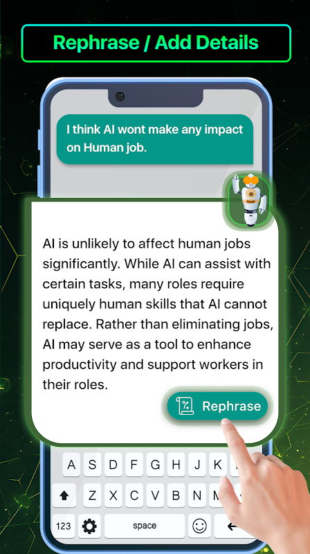 एआई चैट कीबोर्ड के साथ आपकी टाइपिंग को बेहतर बनाने के लिए एआई चैट और एआई लेखन सहायक।