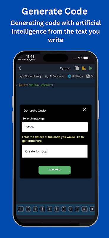 एआई कोड जेनरेटर और रनर डेवलपर्स, छात्रों और तकनीकी उत्साही लोगों के लिए अंतिम मोबाइल खेल का मैदान है, जो 25 से अधिक प्रोग्रामिंग भाषाओं में एआई का उपयोग करके कोड उत्पन्न करना, संपादित करना और निष्पादित करना चाहते हैं - सभी एक शक्तिशाली और निर्बाध ऐप में।