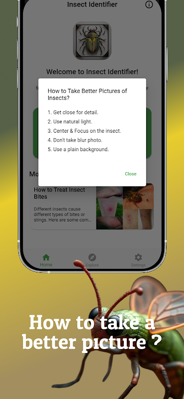 हानिकारक कीड़ों या कीड़ों से बचकर खुद को सुरक्षित बनाएं। कीड़ों की पहचान करने के लिए इस एआई बग आइडेंटिफ़ायर ऐप का उपयोग करें।