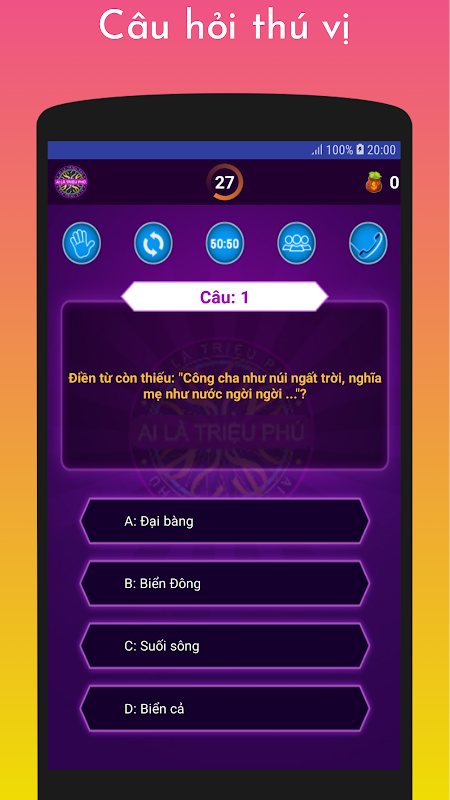 Ai là triệu phú 2019 - Đi Tìm Triệu Phú 2019 là trò chơi kiểm tra kiến thức hiểu biết chung của bạn trên tất cả các lĩnh vực đời sống, văn hóa, xã hội, khoa học, lịch sử. Ứng dụng hứa hẹn sẽ đem lại những giây phút vui vẻ, các kiến thức bổ ích, cảm giác ngồi trên ghế nóng một cách chân thực nhất đến với người chơi.