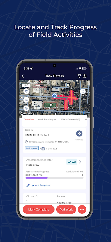 AiDASH IVMS फील्डप्रो क्रू को वनस्पति जोखिमों पर लॉग इन करने और कार्य निष्पादित करने में सक्षम बनाता है।