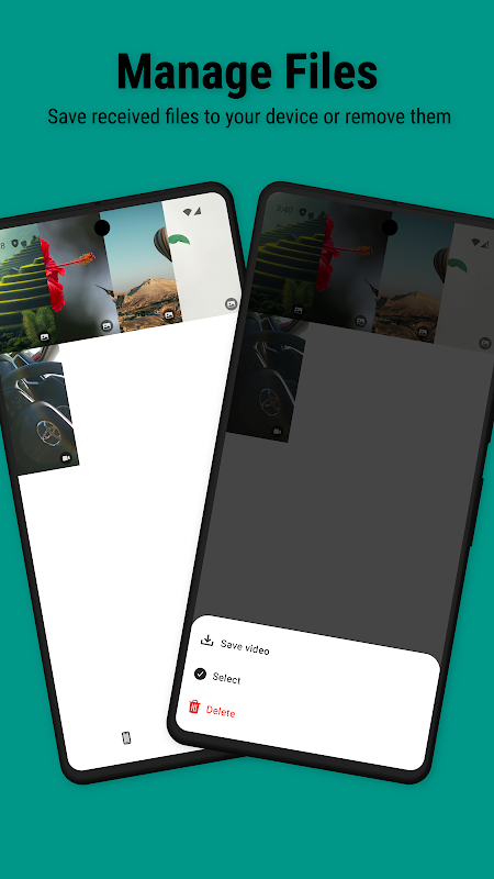 - प्राप्त फ़ाइलें प्रबंधित करें: प्राप्त फ़ाइलों को आसानी से एक्सेस करें, सेव करें या डिलीट करें — सब कुछ एक ही जगह पर।