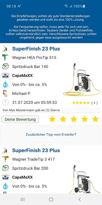 फिर आप (यदि उपलब्ध हो) अन्य ऐप उपयोगकर्ताओं से स्प्रे सेटिंग्स की सिफारिश की जाएगी।
