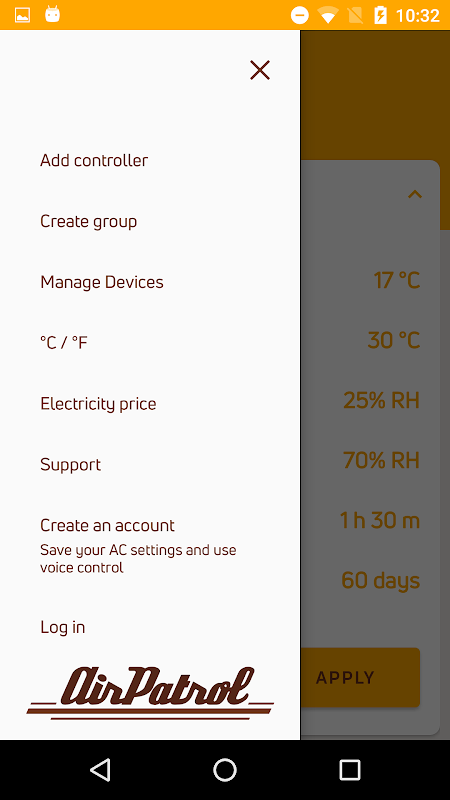 AirPatrol मोबाइल एप्लिकेशन AirPatrol Lite, नॉर्डिक, वाईफाई नियंत्रकों के साथ काम करता है।