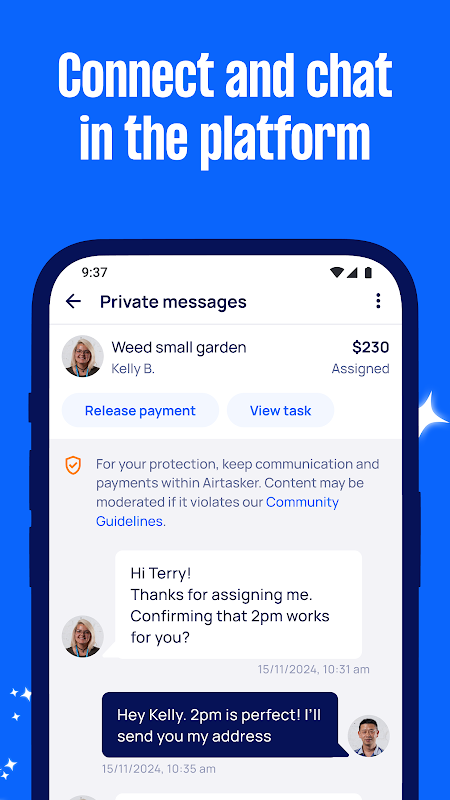टू-डू सूची कभी कम नहीं हो रही है? बोझ उठाएं और एयरटास्कर पर आपको जिस सहायता की आवश्यकता है उसे ढूंढें। बस लोगों को यह बताएं कि आपको कार्य पोस्ट करके क्या करना है, फिर वह प्रस्ताव चुनें जो आपके लिए सबसे अच्छा काम करता है! जब हम आपके लिए भुगतान सुरक्षित रखते हैं तो विवरणों को सॉर्ट करें, फिर एक बार ऐसा करने के बाद आप इसे टास्कर पर छोड़ सकते हैं।