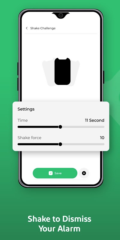समय सुविधा वाले इस शेक अलार्म के लिए आपको डिवाइस को एक निश्चित अवधि तक हिलाना होगा। यह आपके शरीर को सक्रिय करने और दिन की शुरुआत करने के लिए गति बनाने में मदद करता है।