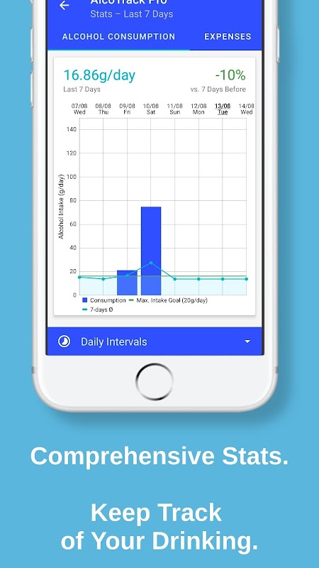 • विस्तृत आँकड़े: अलग-अलग समय सीमा (सप्ताह, महीने, वर्ष) को देखते हुए अपनी शराब की खपत और खर्च का विश्लेषण करें।