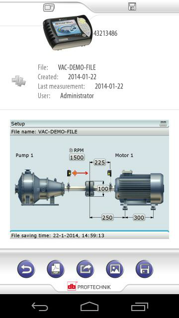 • Download a PDF report of the shaft alignment (a PDF reader must be installed on your ANDROID® powered device in order to open the PDF reports)