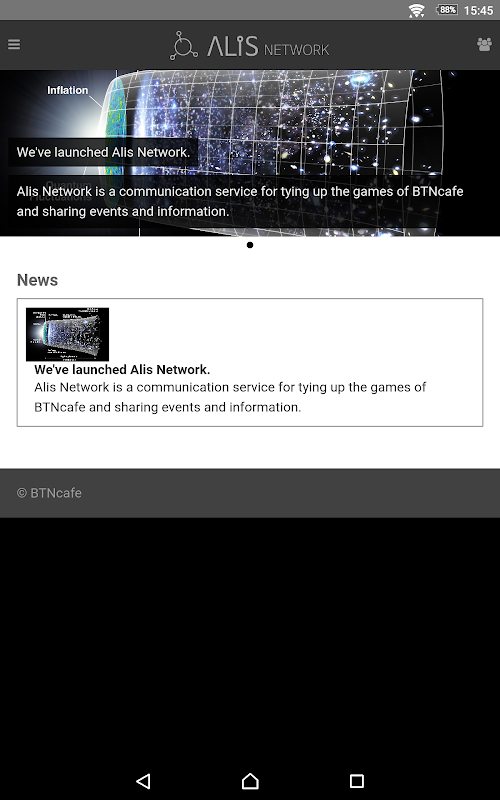 Alis Network is a communication service for tying up the games of BTNcafe and sharing events and information.