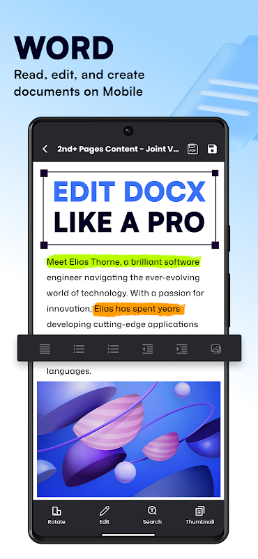 इस दस्तावेज़ एडिटर और व्यूअर को आज ही डाउनलोड करें! अपने मोबाइल ऑफिस के लिए ज़रूरी सभी दस्तावेज़ टूल प्राप्त करें।
