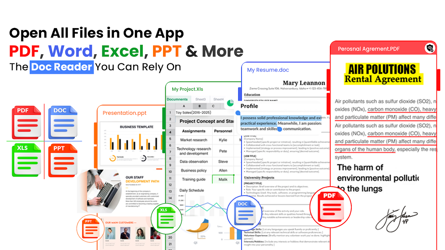 - Read PDF, DOC, XLS, and More