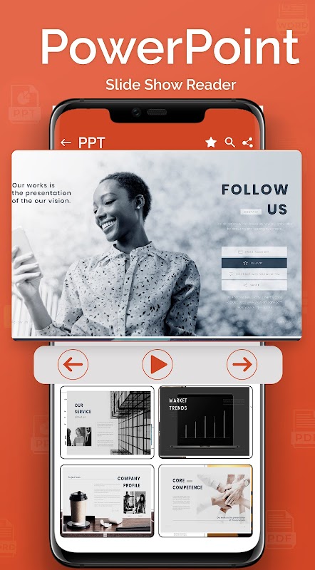 - पावरपॉइंट व्यूअर: पीपीटी, पीपीएस, पीपीटीएक्स, स्लाइड शो, पीपीएसएक्स
