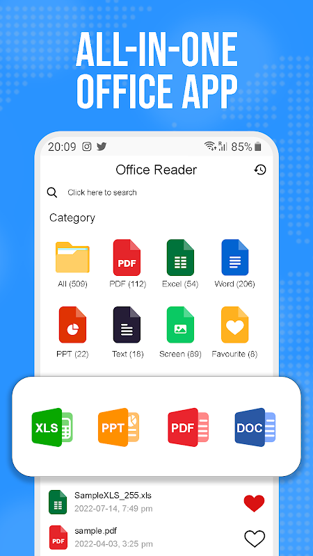 सभी दस्तावेज़ रीडर - PDF, Excel, Docx, Xlsx, PPT, TXT, Office Suite