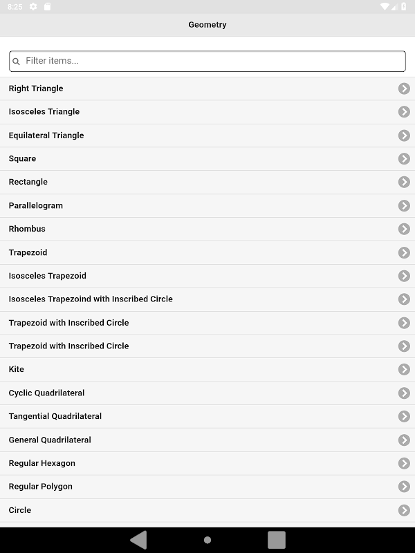 गणित के छात्रों के लिए सभी ज्यामिति फॉर्मूला। इस एप्लिकेशन में सूत्र खोजें।