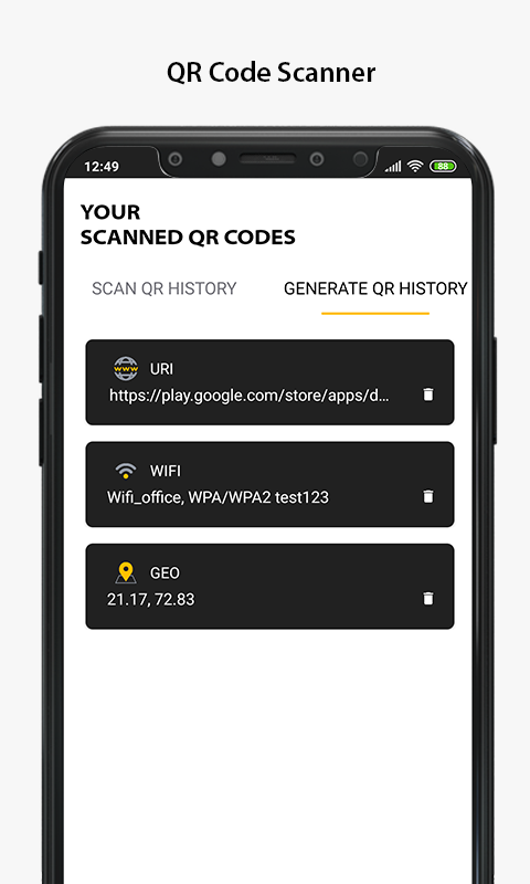 - Maintain history of Scanned & Generated QR codes for quick use of that QR code.