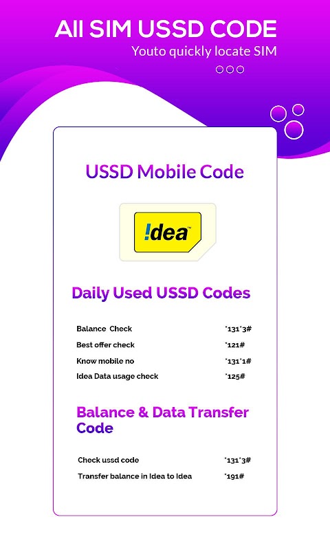 यह ऐप सभी मोबाइल ऑपरेटरों के लिए यूएसएसडी मोबाइल कोड खोजने में मदद करेगा।