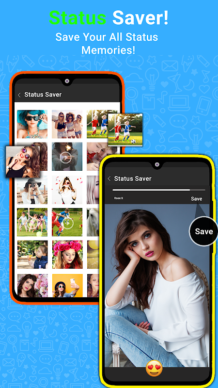 अब व्हाट्सएप स्टेटस को बचाना आसान है, जो मजेदार वीडियो आपके दोस्तों और अन्य प्रियजनों द्वारा साझा किए जाते हैं। आप व्हाट्सएप के लिए स्थिति से सभी लड़कों के वीडियो और लघु वीडियो डाउनलोड कर सकते हैं। व्हाट्सएप के नाम से जाने जाने वाले इस एप्लिकेशन में सभी वीडियो को फ़ोल्डर में संग्रहीत किया जाएगा: व्हाट्सएप और रिकवरी डिलीट किए गए संदेशों के लिए सभी वीडियो स्टेटस डाउनलोडर।
