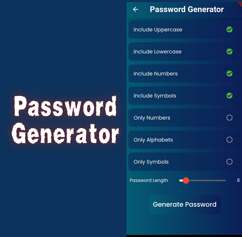 पासवर्ड जनरेटर: एक ऐप में सभी टूल्स में जिसमें मजबूत और सुरक्षित पासवर्ड बनाएं जो हैक करना मुश्किल हो, और आपकी व्यक्तिगत जानकारी को सुरक्षित रखे।
