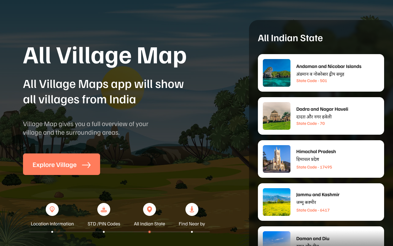 सभी गाँव के नक्शे - गाँव का नक्शा भारत के सभी गाँवों को एक पदानुक्रमित क्रम में दिखाएगा, या आप दुनिया भर में किसी भी स्थान को खोज सकते हैं ताकि आप अक्षांश और देशांतर मूल्यों के साथ स्थान का विवरण देख सकें और मानचित्र पर देख सकें।