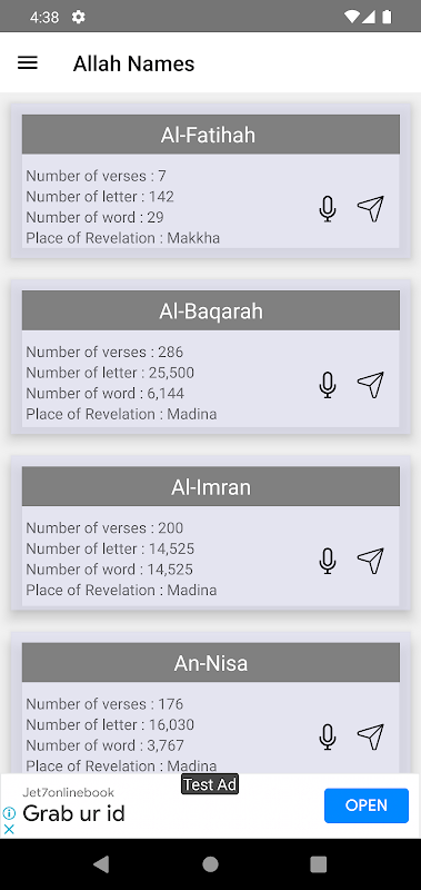 यह ऐप इस्लामिक के बारे में सभी सामग्री है, जैसे कि 3 भाषाओं के साथ अल्लाह के 99 नाम। अल कुरान सुर का नाम भी
