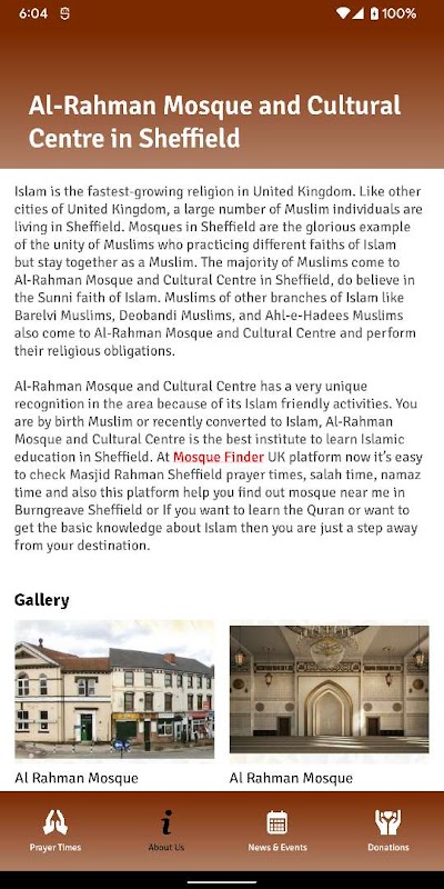 अल-रहमान मस्जिद और सांस्कृतिक केंद्र की इस्लाम के अनुकूल गतिविधियों के कारण इस क्षेत्र में एक बहुत ही अनोखी पहचान है। आप जन्म से मुस्लिम हैं या हाल ही में इस्लाम में परिवर्तित हुए हैं, अल-रहमान मस्जिद और सांस्कृतिक केंद्र शेफ़ील्ड में इस्लामी शिक्षा सीखने के लिए सबसे अच्छा संस्थान है।