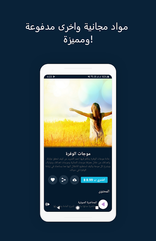 من خلال تحميلك وتسجيلك في التطبيق تستطيع تصفح المواد المجانية وتحميلها على جهازة للاستماع لها بدون شبكة الانترنت، ويمكنك شراء المواد المدفوعة والاستفادة من التحديثات والتنبيهات التي نرسلها لكم بشكل يومي.