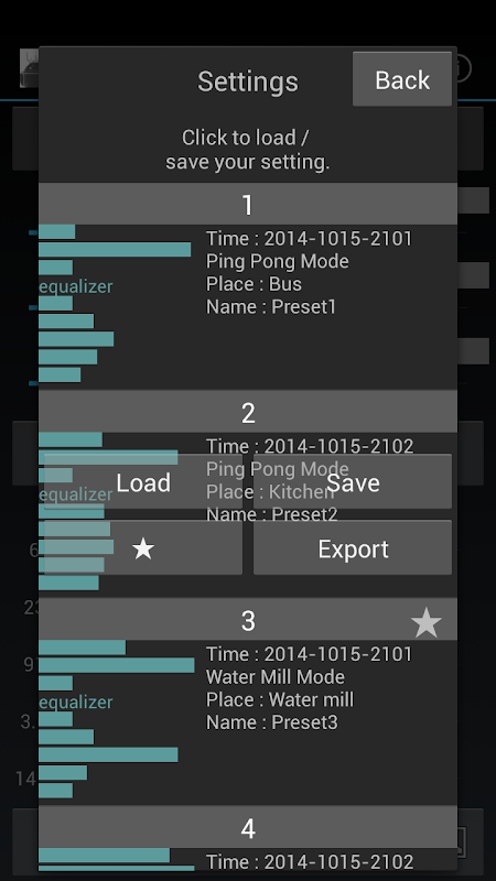 Save your favorite setting, and you can load at any time.