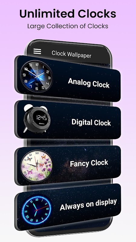 In mode of digital watch, you have plenty of clock designs, themes and stickers, you can set your own choice. Live clock wallpaper app is available for free to use night clock and smart watch features.