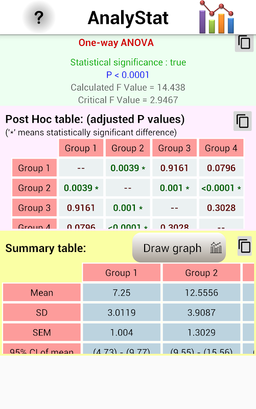 - टू-वे एनोवा (टुकी, डननेट और एलएसडी पोस्ट-हॉक टेस्ट के साथ)