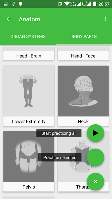 Just choose the organ system or part of the body you want to practice.