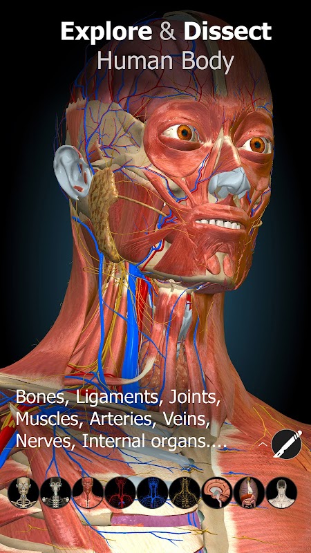 मानव शरीर रचना विज्ञान का अध्ययन करने के लिए एक सही और पूरी तरह से 3 डी ऐप, एक उन्नत इंटरैक्टिव 3 डी टच इंटरफ़ेस पर बनाया गया है।