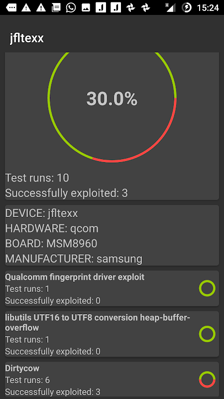 This is where Android Exploits comes in: We right now offer some latest exploits to be tested on your device. That means, you're able to execute some tests in order to check if your device is vulnerable. The included exploit terminal gives some details about the exploit progress and helps to understand what is happening in the background.