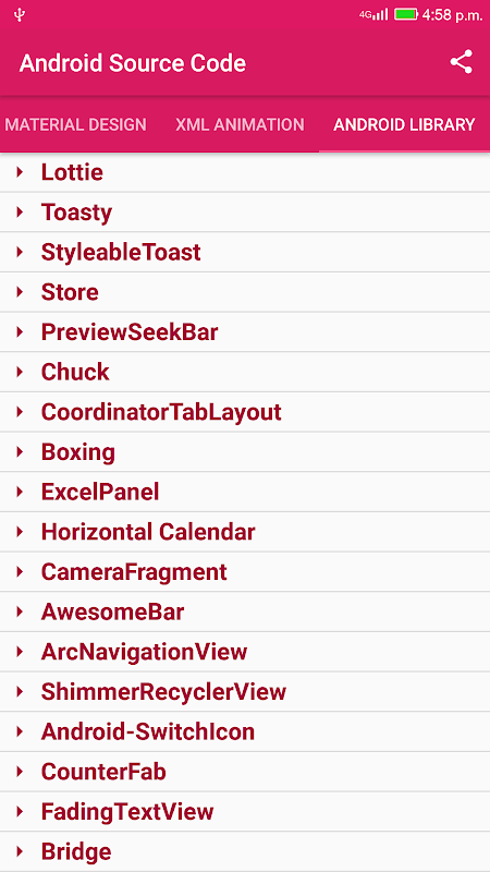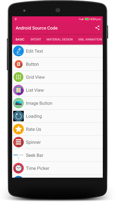 यह एप्लिकेशन विभिन्न एंड्रॉइड विषयों से संबंधित स्रोत कोड प्रदान करता है।