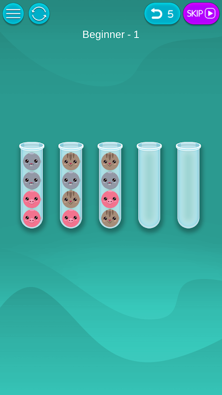 जब तक सभी जानवरों को एक ही प्रकार के समूह में नहीं रखा जाता तब तक जानवरों को ट्यूब में क्रमबद्ध करें। आप स्तर जीतने के लिए एक ही ट्यूब में एक गेंद की तरह जानवरों को सॉर्ट करने की आवश्यकता होगी।