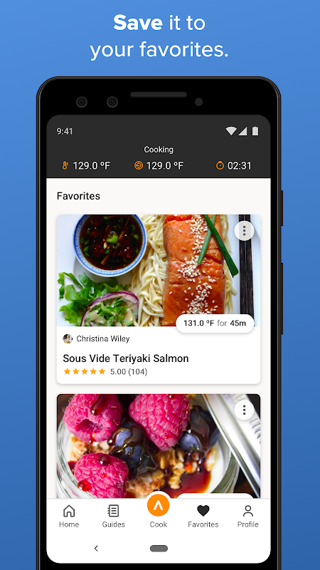 मिशेलिन स्टार रसोइये और घर के रसोइयों द्वारा sous vide व्यंजनों का सबसे बड़ा संग्रह ब्राउज़ करें। फिर बस अपने कुकर को ऐप से कनेक्ट करें और अपने मोबाइल फोन से अपने कुक को सही तरीके से शुरू करें, बंद करें और मॉनिटर करें। प्रेरित लग रहा है? अपनी खुद की रेसिपी बनाएं और शेयर करें और। ग्राम पर वायरल करें। आपकी जो भी खुशी है, Anova पाक एप्लिकेशन सब कुछ वीडियो के लिए जगह है।