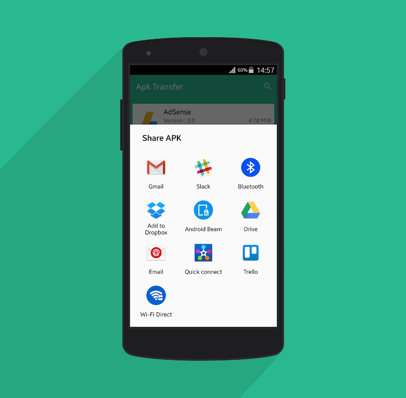 APK Share let's you share apk via bluetooth, e-mail, wifi-direct, slack, ShareIt, Telegram, Trello and much more!