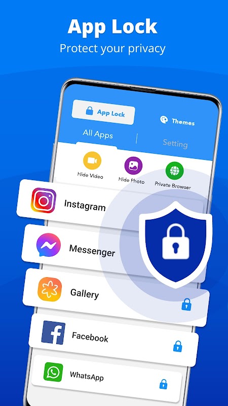 ✦ अब आप अपने सभी सोशल मीडिया ऐप जैसे व्हाट्सएप, इंस्टाग्राम, फेसबुक और अन्य को लॉक कर सकते हैं और किसी को भी अपनी निजी चैट या अपने सोशल मीडिया फीड को ब्राउज़ करने से रोक सकते हैं। ऐप लॉक आपकी गैलरी, संपर्क, संदेश आदि के लिए पूर्ण सुरक्षा प्रदान करता है। ऐप लॉक के पासवर्ड सुरक्षा के साथ आपकी निजी तस्वीरें, वीडियो और संदेश सुरक्षित हैं।