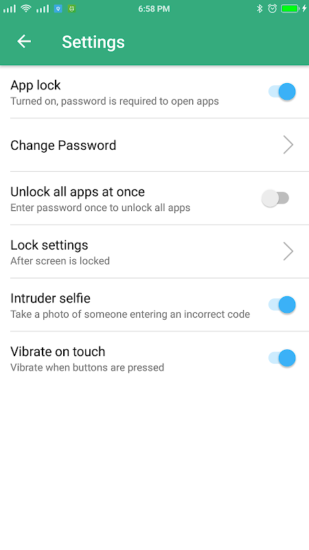 पैटर्न लॉक के साथ अपने एप्लिकेशन को लॉक करें। अनुप्रयोग ताले, घुसपैठिये सेल्फी और लॉक भेष: applock जरूरी अमीर समर्थन करता है। हर संभव तरीके में आपकी गोपनीयता और तस्वीर सुरक्षित सुरक्षित रखें।