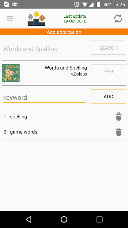दिए गए कीवर्ड के लिए Google Play बाजार में आपके एप्लिकेशन की स्थिति देखने के लिए पहला (और शायद एकमात्र) आवेदन है।