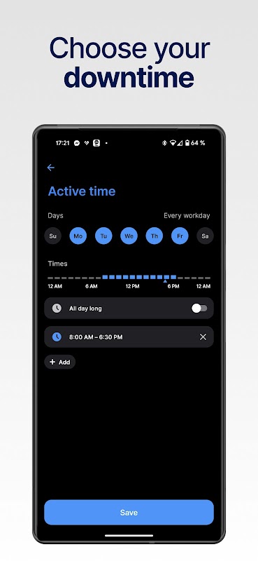 Control screen time, block apps, websites or social media, and transform your digital life. Prioritize tasks, boost productivity and enhance your digital wellbeing.