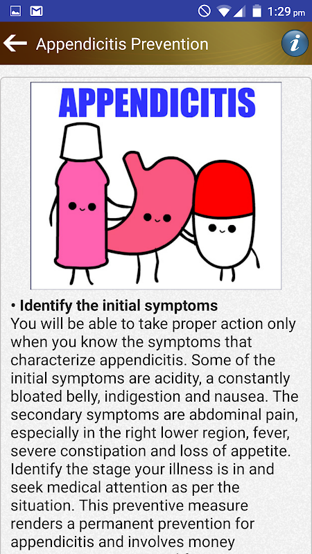 परिशिष्ट आहार सहायता टिप्स एप्लिकेशन पथरी के बारे में लक्षण उपचार और आहार टिप्स और मदद का कारण बनता है एक नि: शुल्क एप्लिकेशन में जानकारी शामिल है। पथरी परिशिष्ट की सूजन है और तीव्र या पुराना हो सकता है। अगर अनुपचारित छोड़ दिया, पथरी अपने परिशिष्ट फट और संक्रमण का कारण हो सकती है। यह गंभीर और कभी कभी घातक हो सकता है। आप पथरी है, तो आप एक या निम्न लक्षणों में से अधिक का अनुभव हो सकता है: