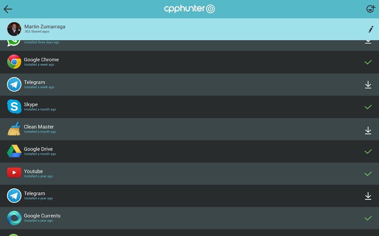 INVITE FRIENDS: Remember to invite your friends to Apphunter by clicking on the Invite Friends icon. This way you will be able to check what apps they have and what they are downloading.