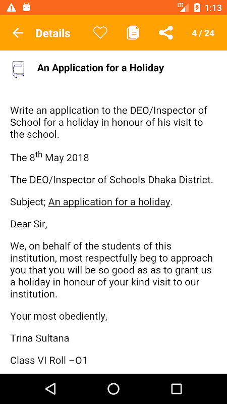 - एक छुट्टी के लिए एक आवेदन